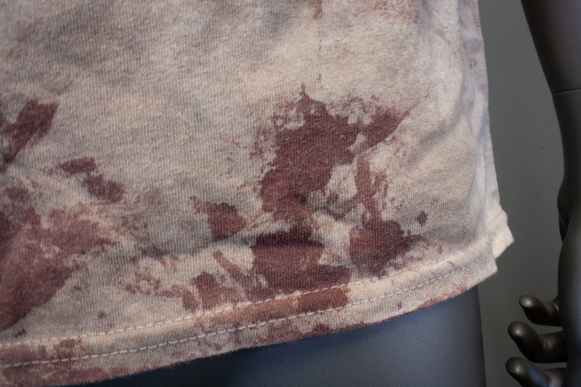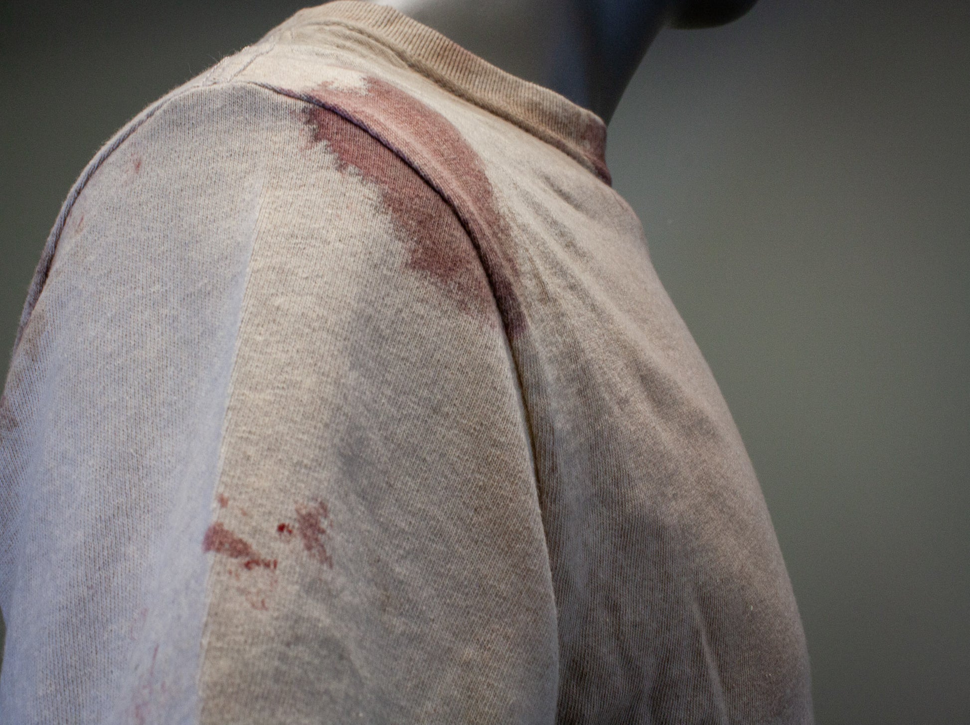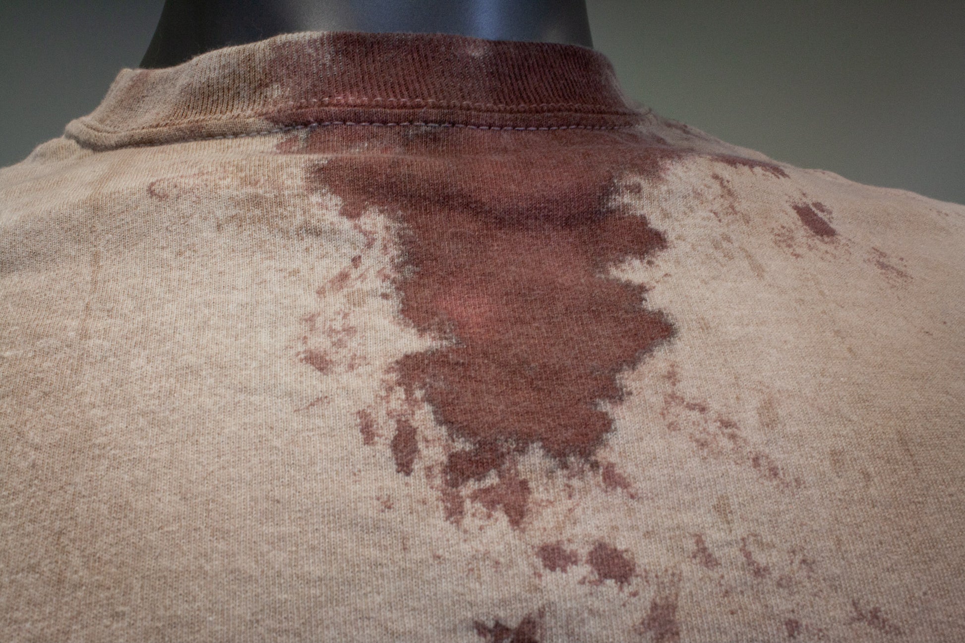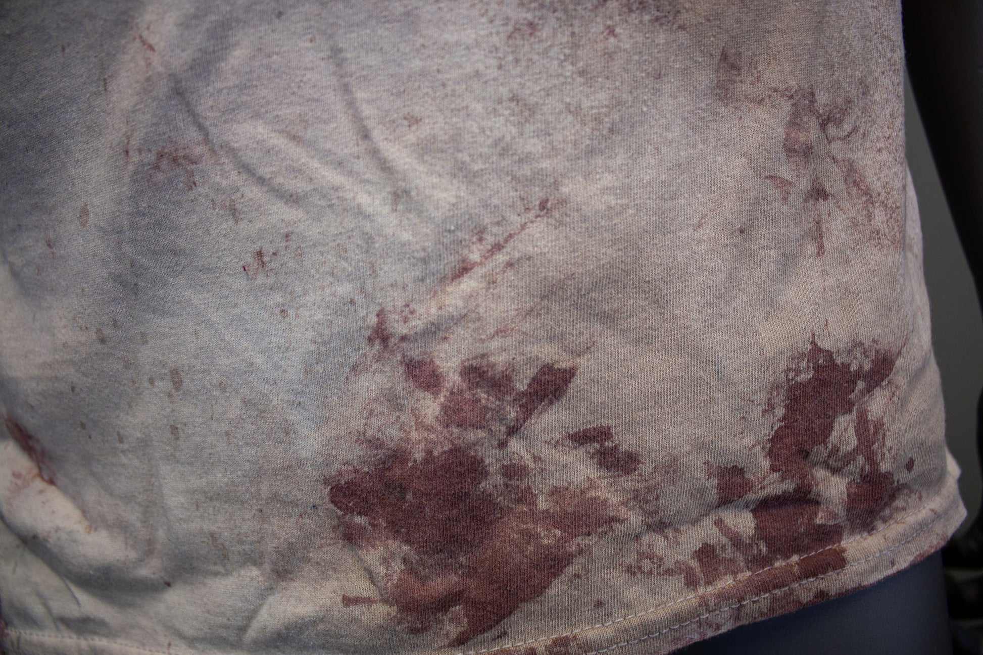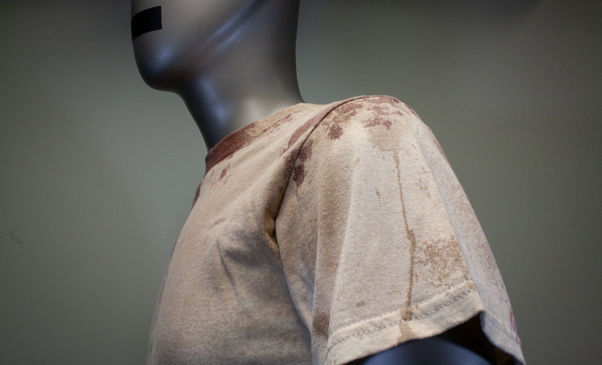 FEELS LIKE A NORMAL SHIRT, NO STAGE BLOOD IS USED; ONLY PIGMENTS, FABRIC PAINTS & DYES, WHICH ARE EMBEDDED INTO THE FABRIC TO APPEAR STAINED.