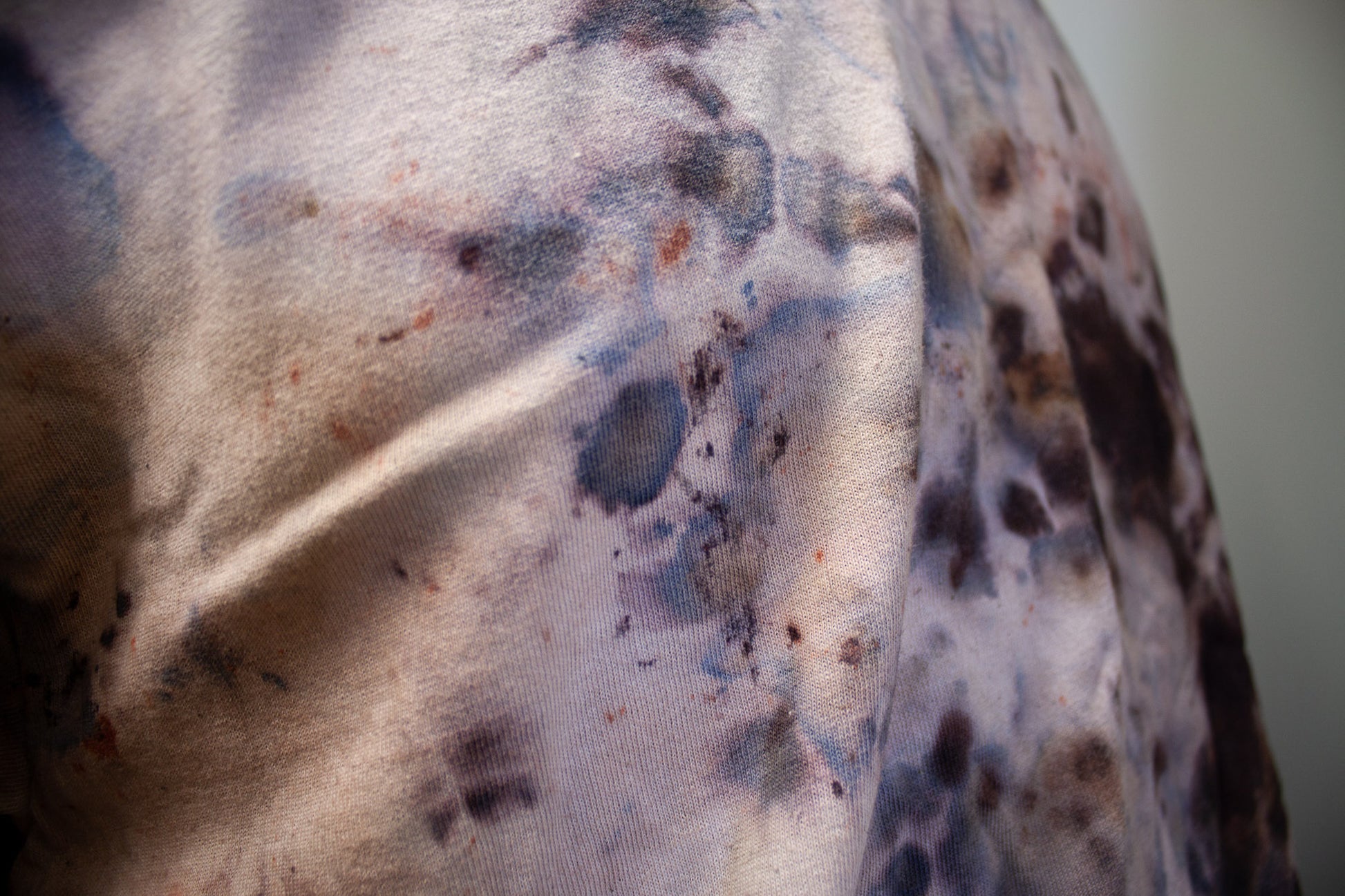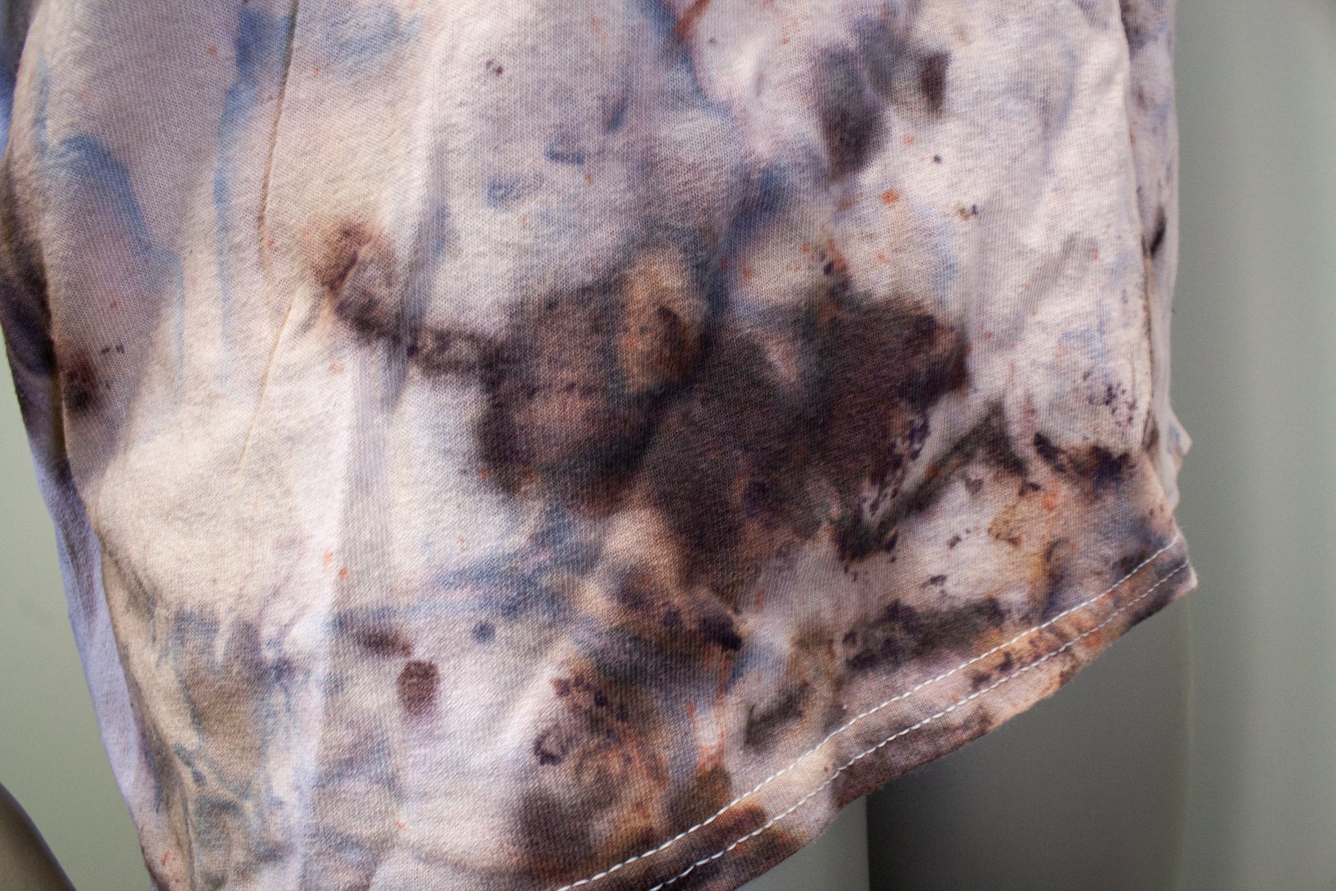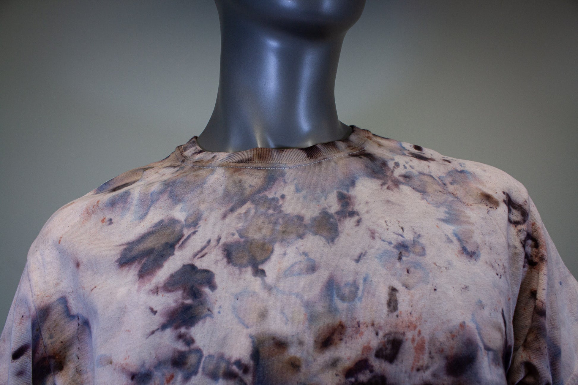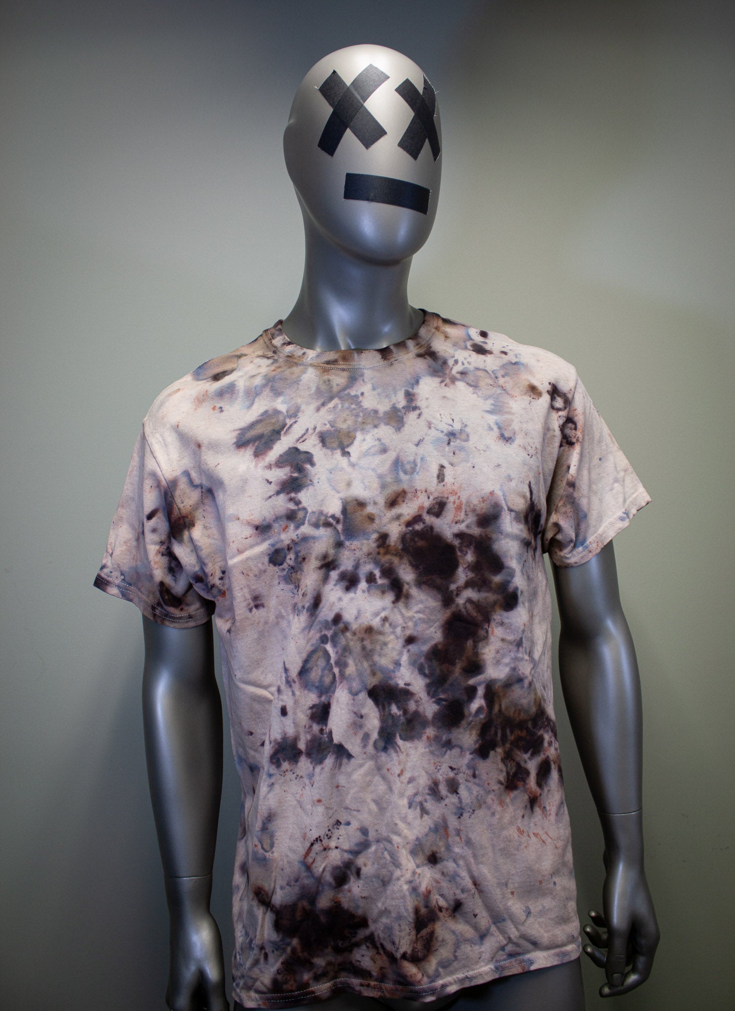 FEELS LIKE A NORMAL SHIRT; PIGMENTS ARE EMBEDDED INTO THE FABRIC TO MAKE A STAINED APPEARANCE.