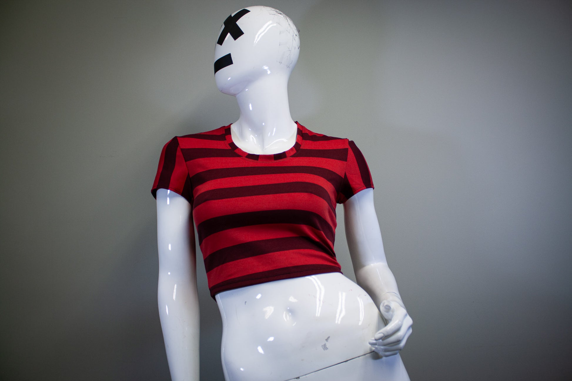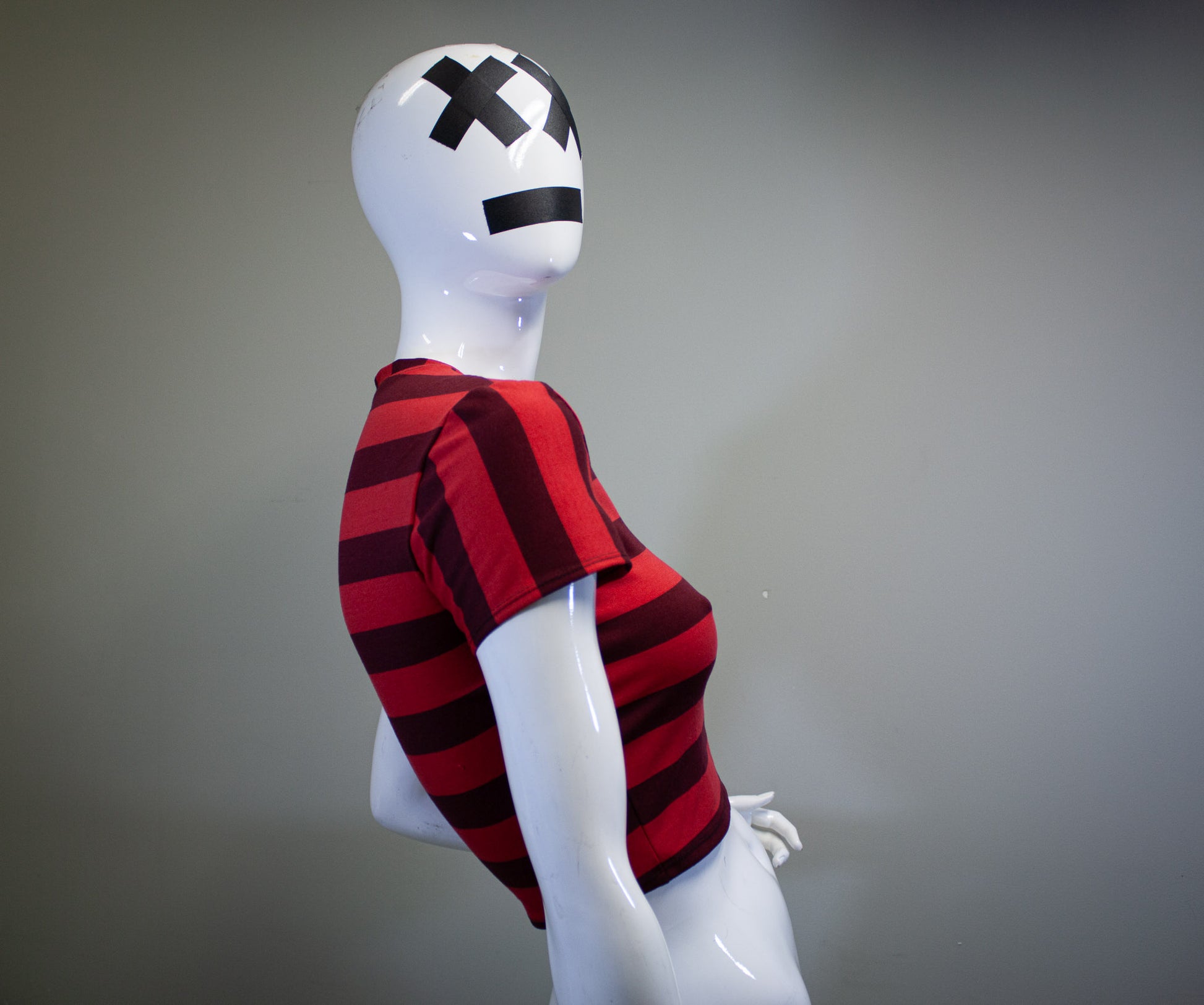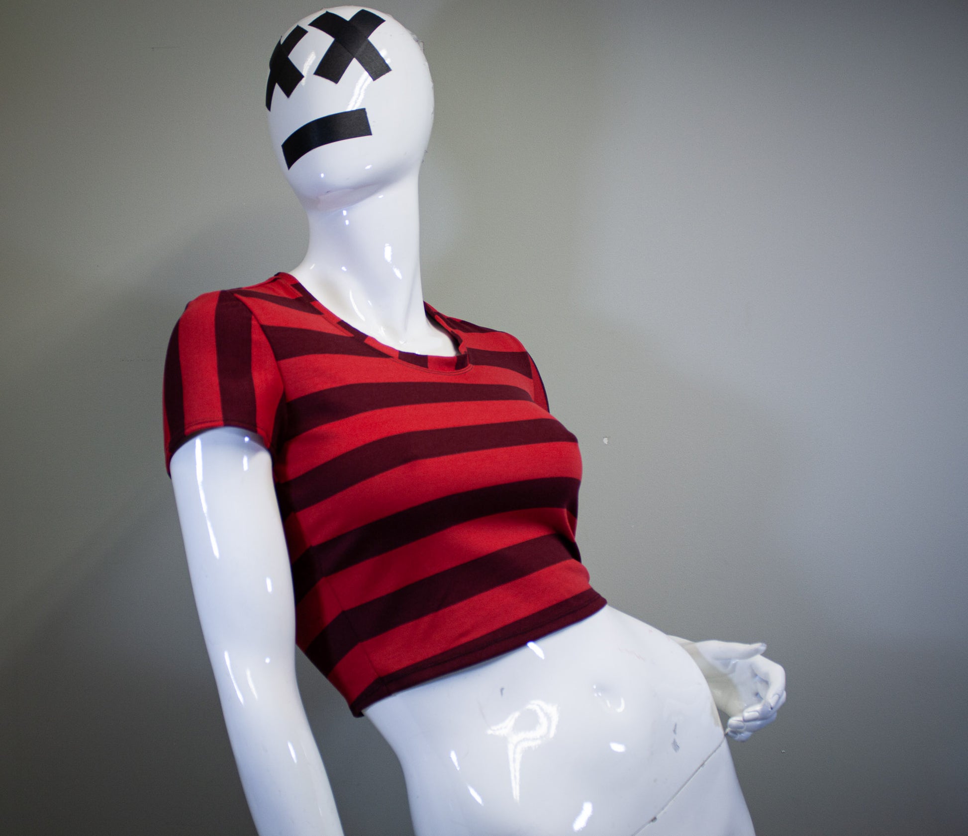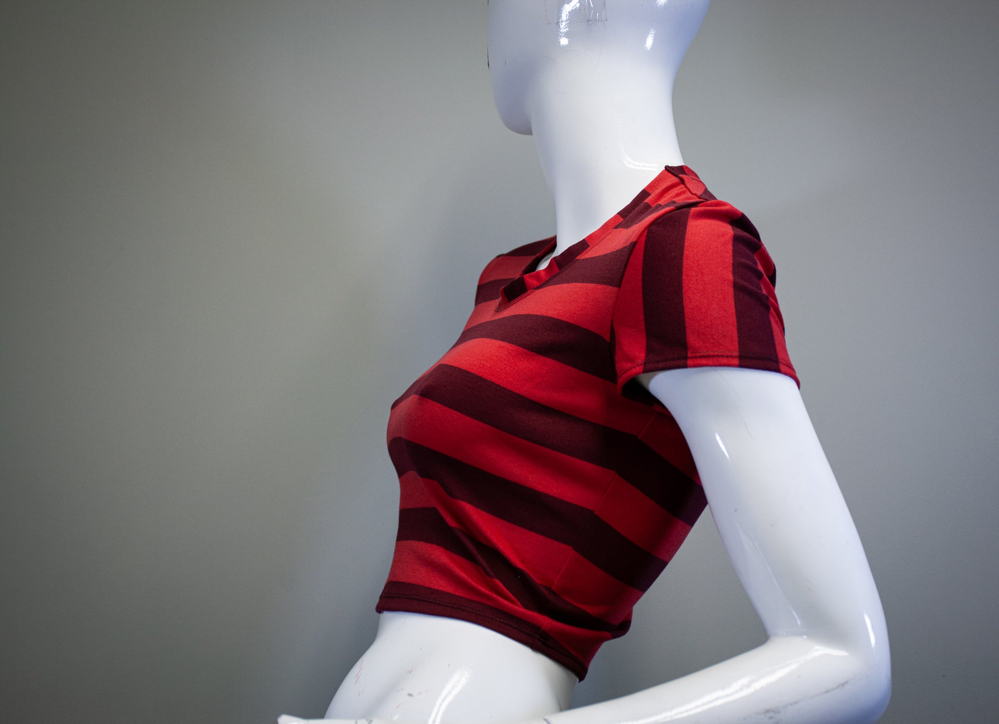 WINE & CHERRY RED, STRIPED CROP TOP.