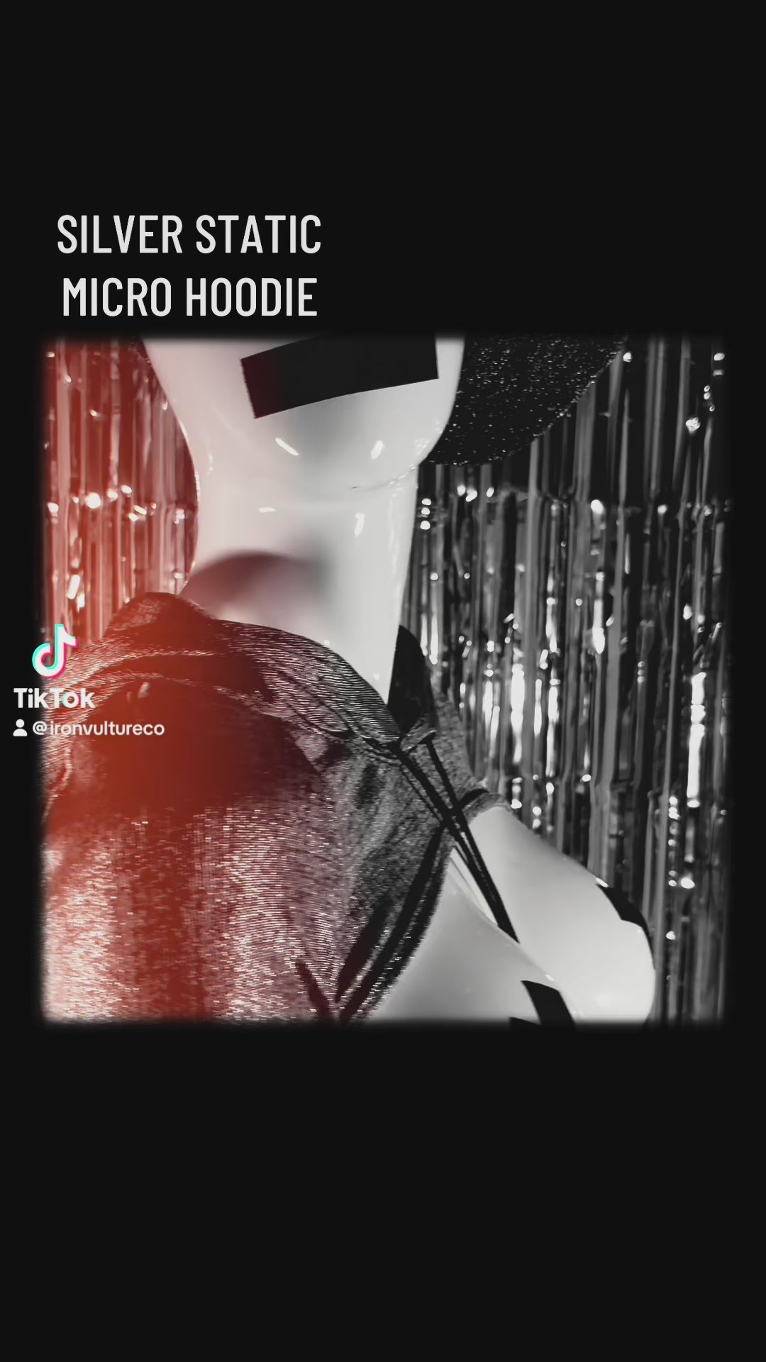 MADE WITH A STRETCHY FOIL KNIT FABRIC.