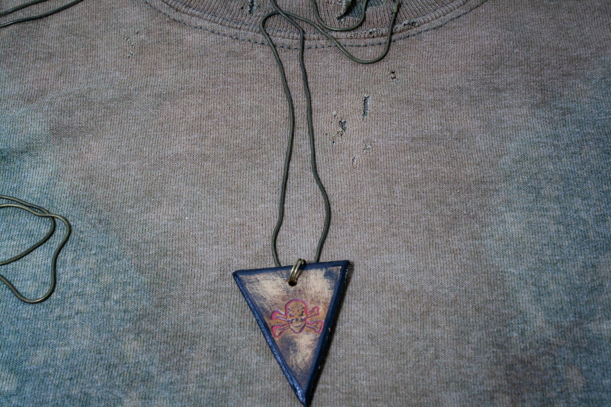 SKULL AND CROSSBONES, LEATHER EMBOSSED NECKLACE.