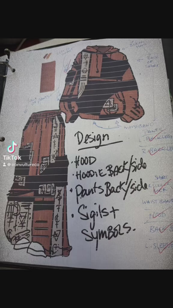 THE SIGILS ARE HAND STITCHED AND HAVE BEEN CREATED FROM A POEM. WILL SEND THE MEANING OF THE SIGILS WITH THE ORDER (THE ONLY ONE WHO WILL KNOW THE MEANING OF THE SIGILS WILL BE THE OWNER OF THE SHIRT, PANTS AND ME).